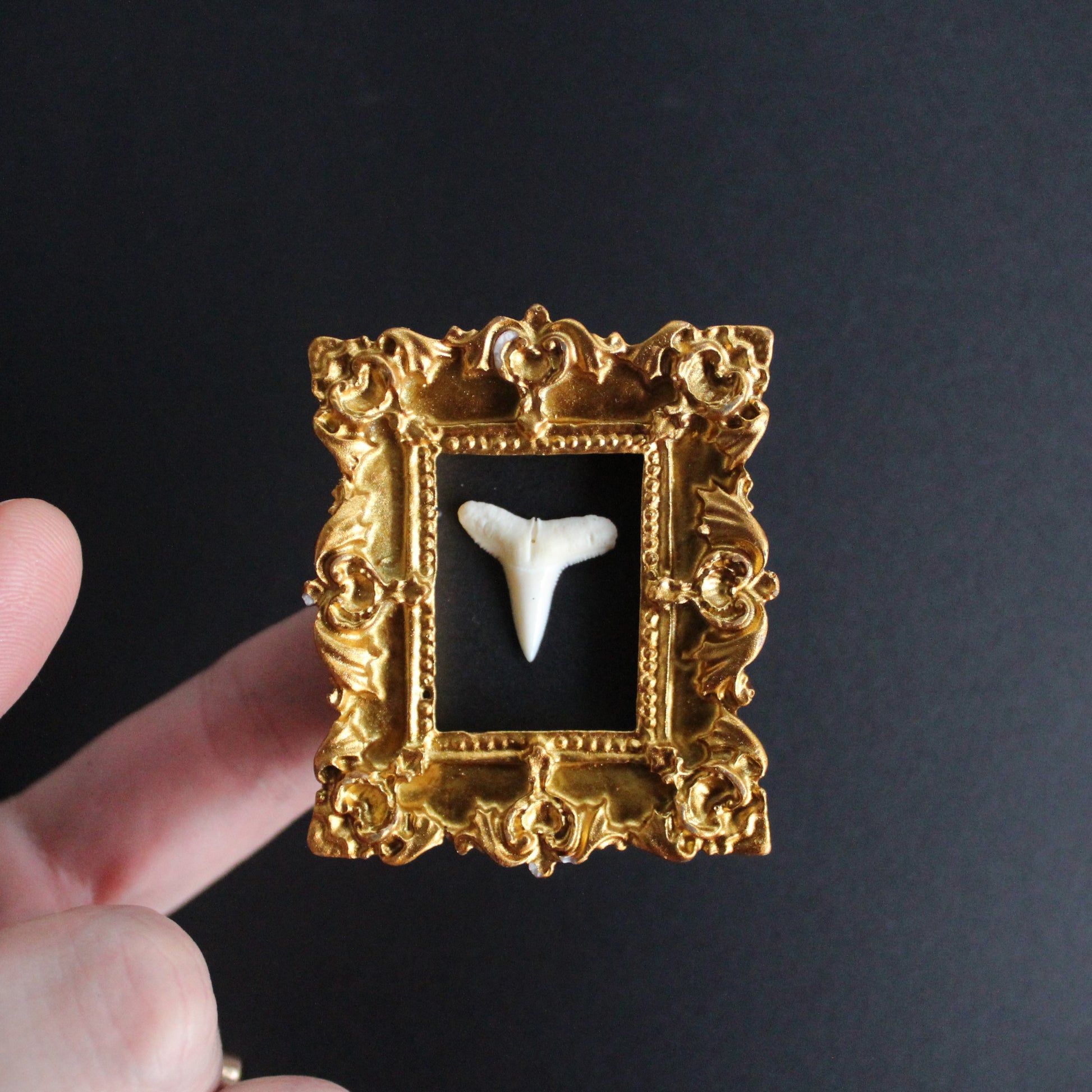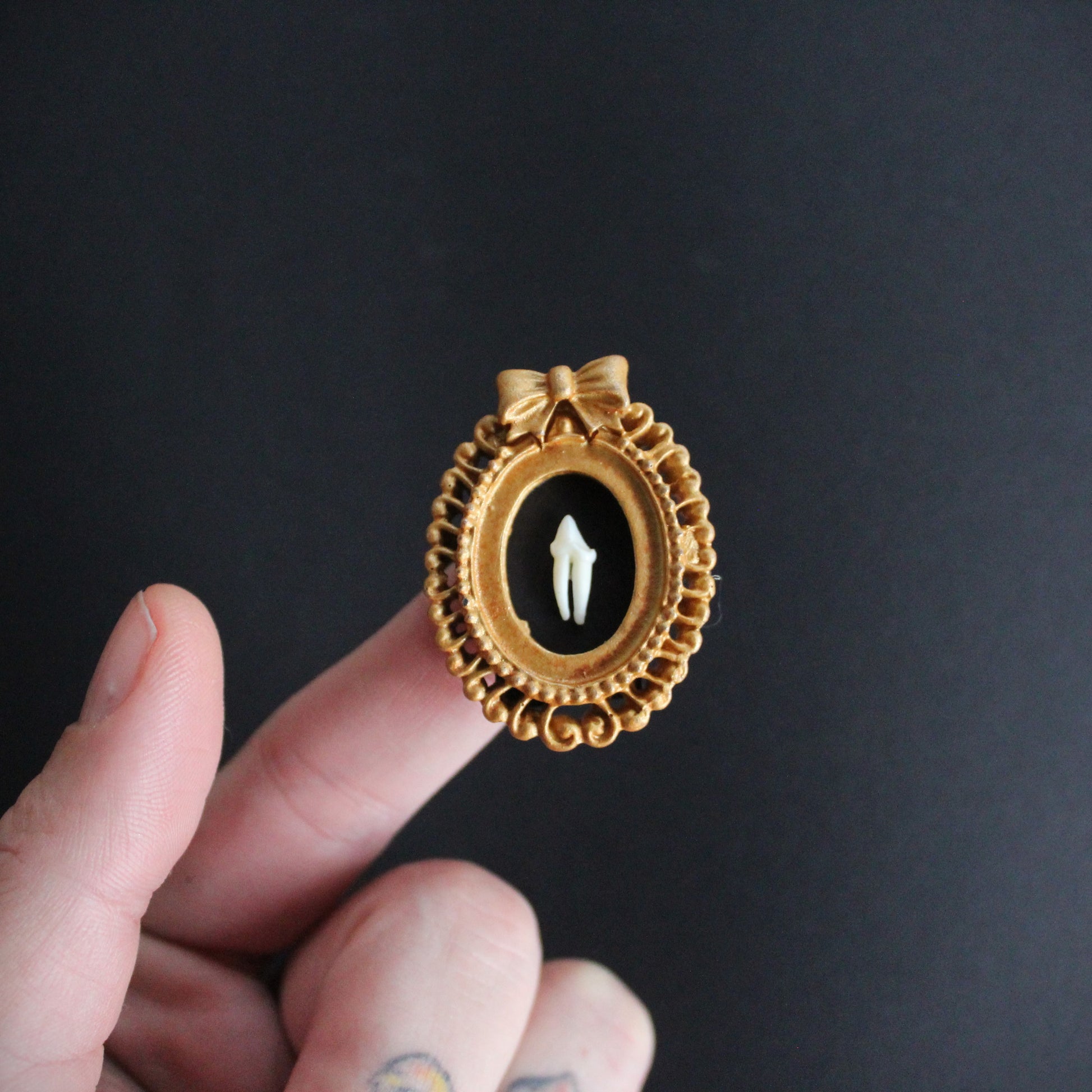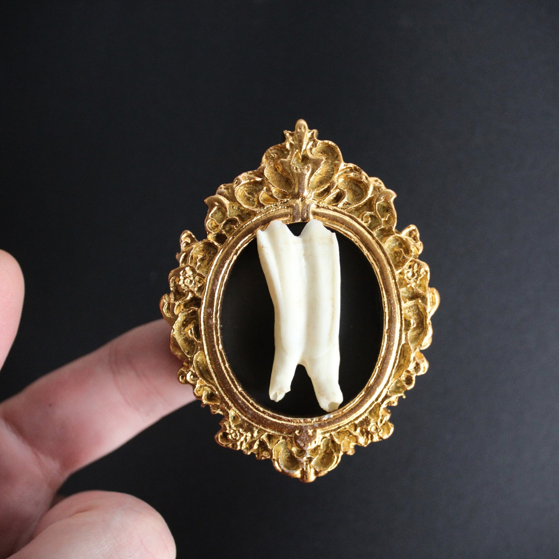 These ornate-style magnets are made of resin, each one with its own cleaned animal tooth or bone.