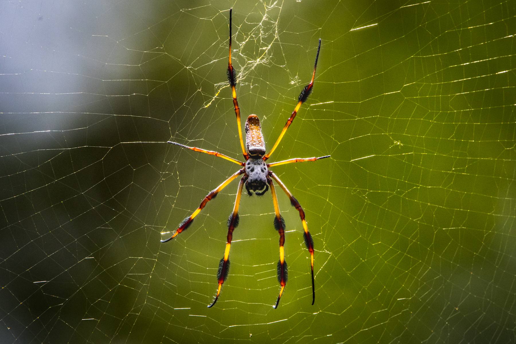 This particular species is the golden silk orb weaver, also known as the banana spider. She is female, with some females being at least nine times the size of males.