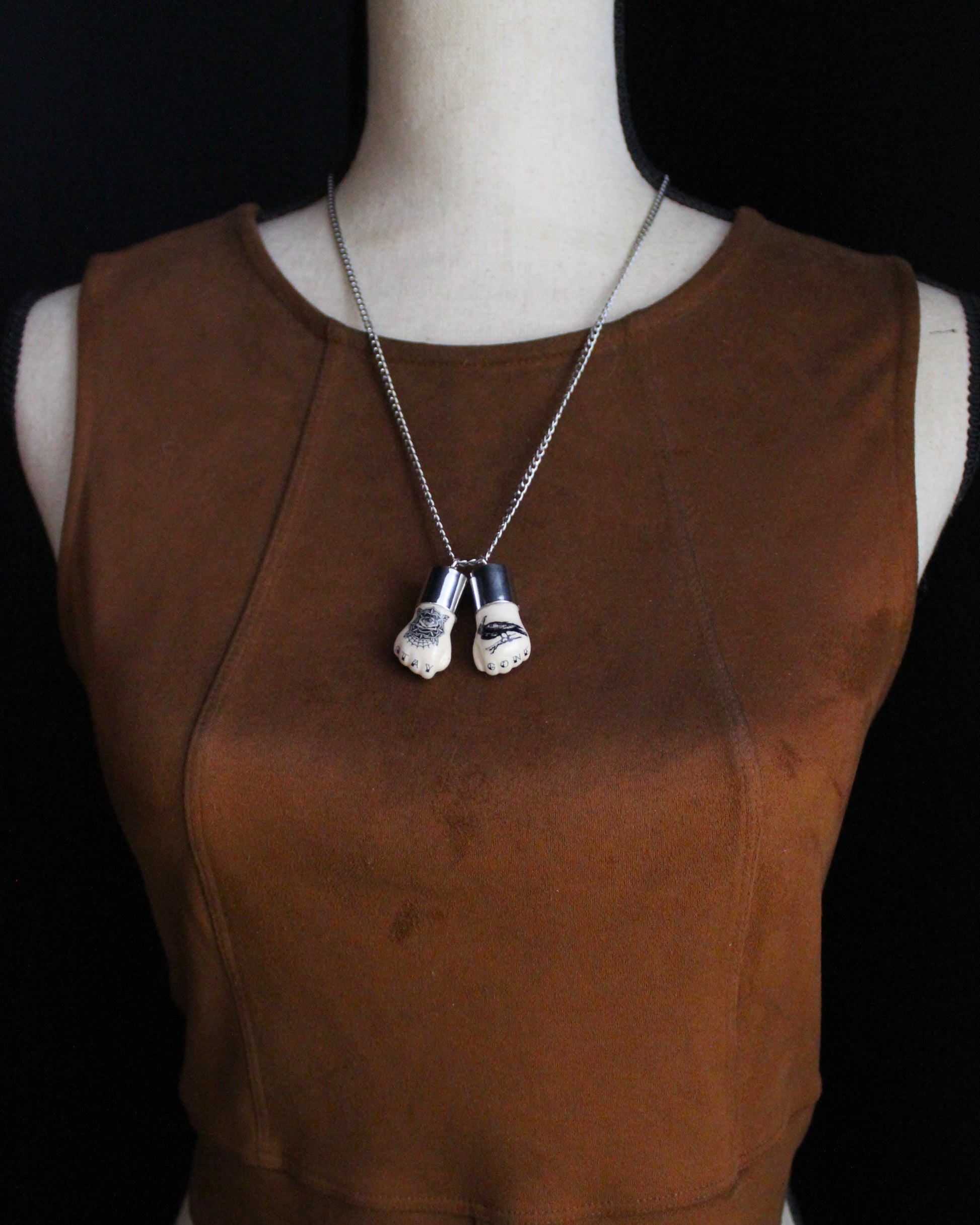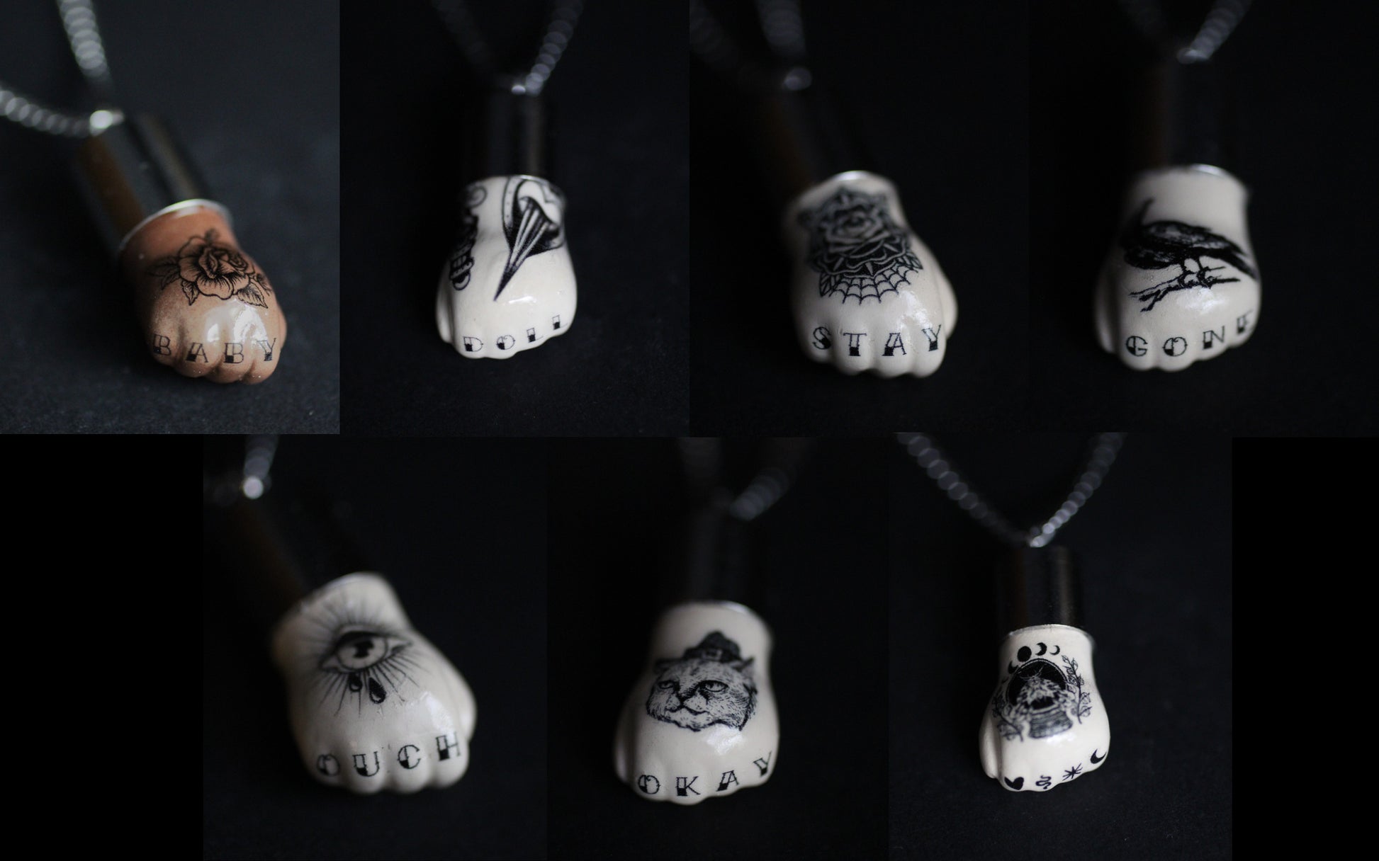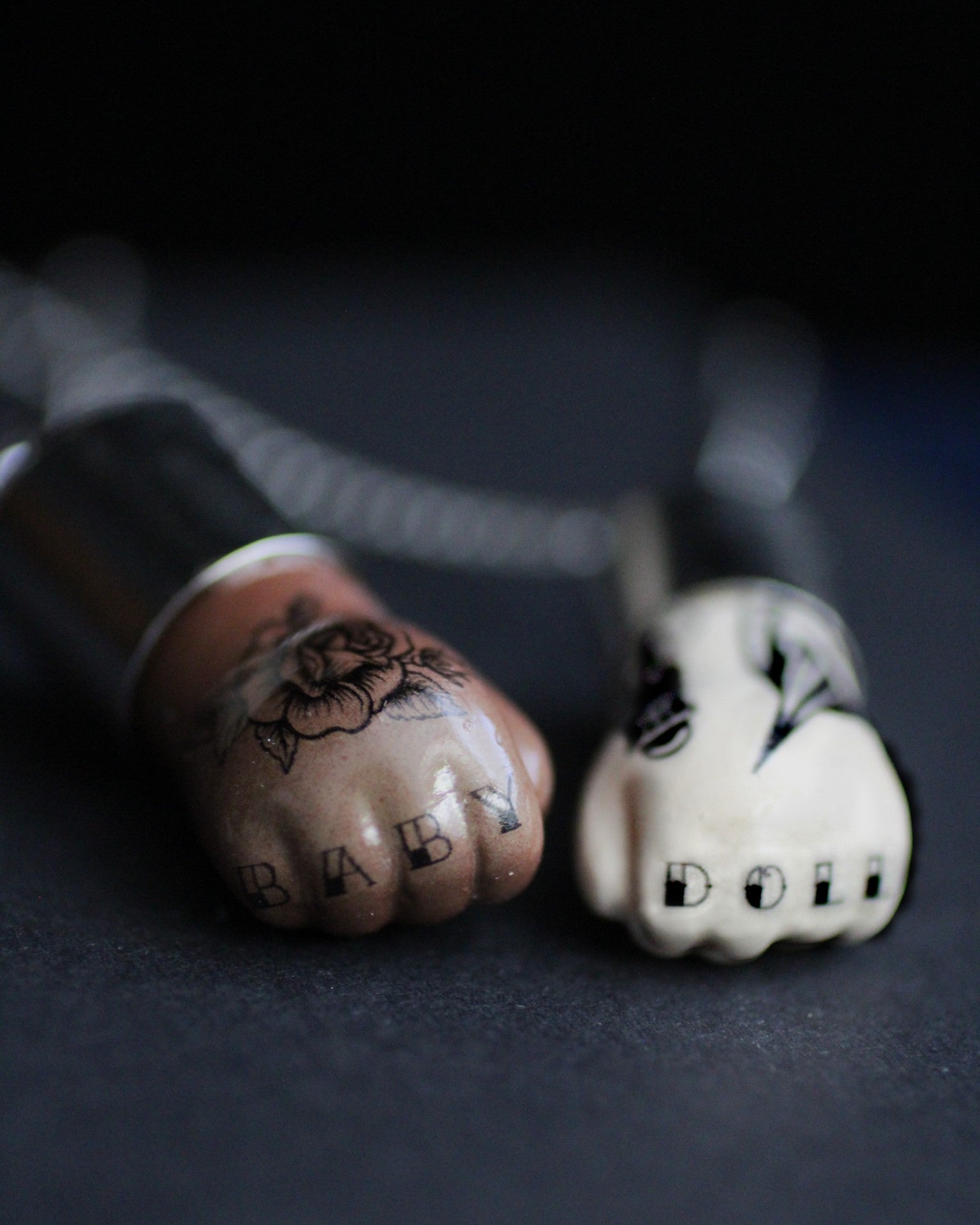 Delicate doll hands with a tougher twist, made with antique bisque porcelain and reimagined.