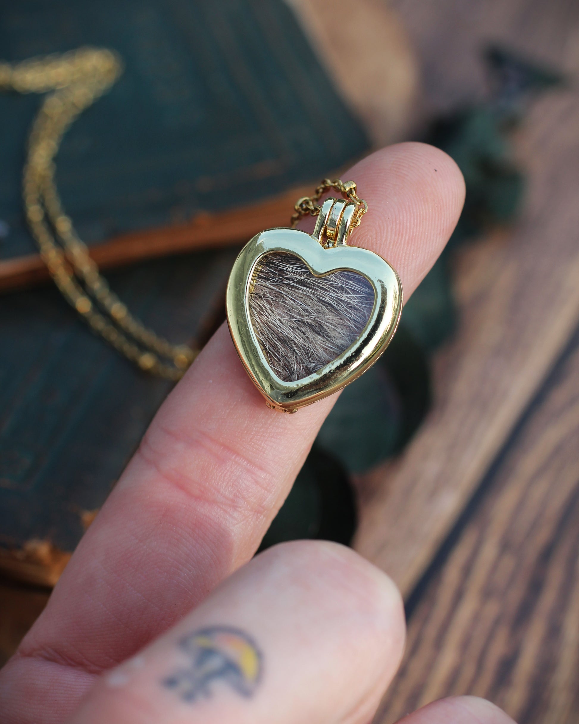 This piece is not solid gold and is not intended for long-term wear or as an heirloom. They are simple but lovely as a way to cherish a pet that has passed on, as pictured here with a lock of fur.